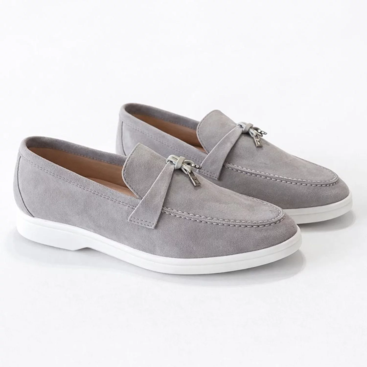 Pantofii loafers Easy Grey sunt definiția confortului elegant de zi cu zi. Realizați din velur gri foarte moale și catifelat, acest model din colecția nouă oferă un aspect rafinat și o senzație plăcută la purtare.