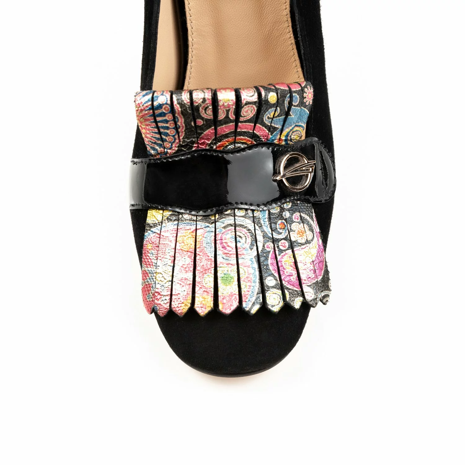 - Pantofi mov sidefat din piele naturala cu franjuri si accesoriu