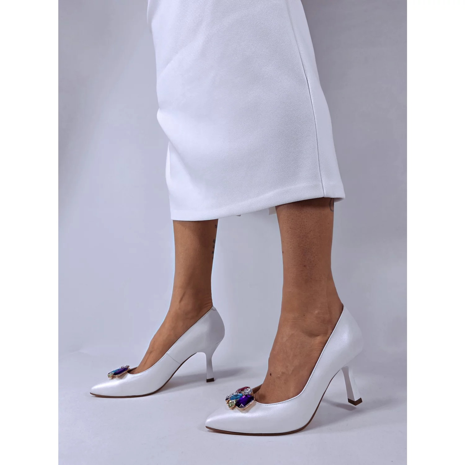 Pantofi stiletto Piele Naturala Albi cu accesoriu color detasabil Greta