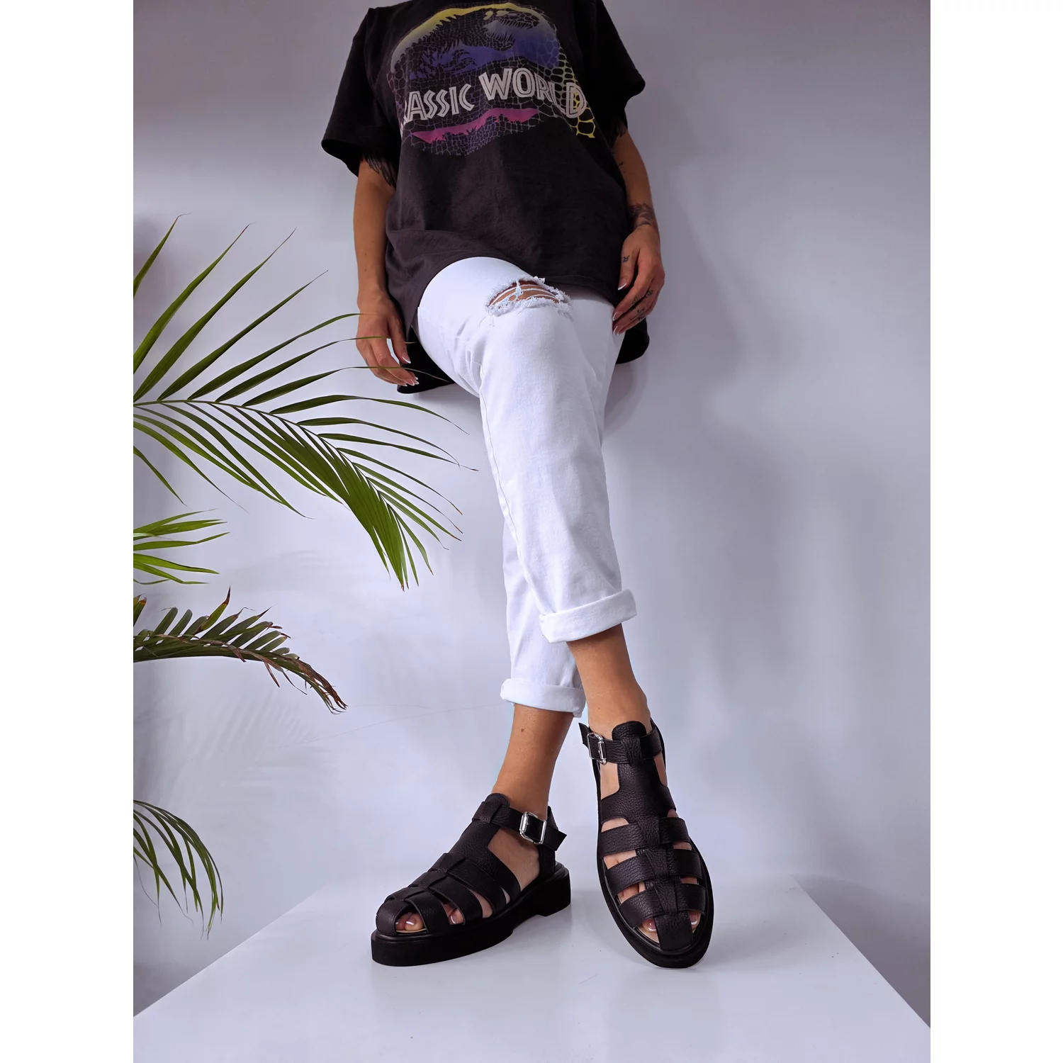 Sandale Casual Piele Naturala Negre cu barete Fargo