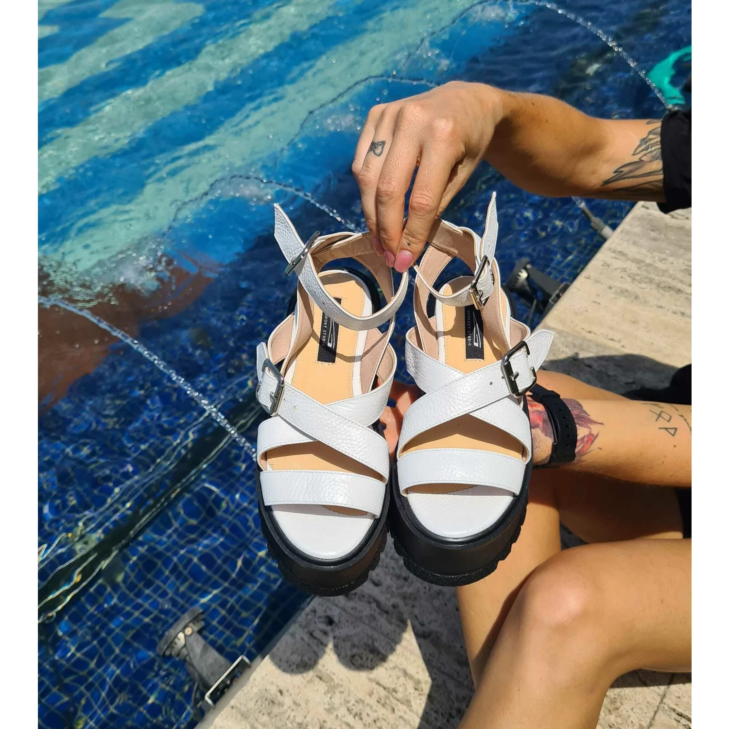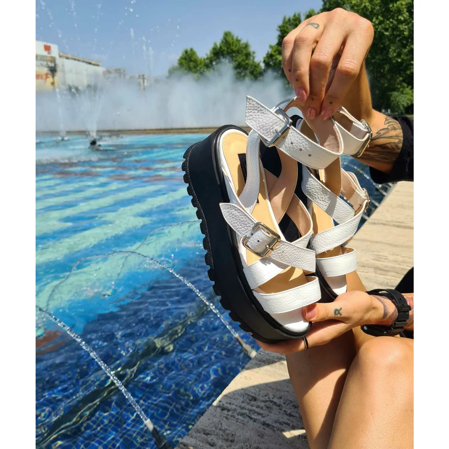 - Sandale de dama confectionate manual cu barete si talpa groasa perfecte pentru vara. Sandale acesorizate cu catarame masive.