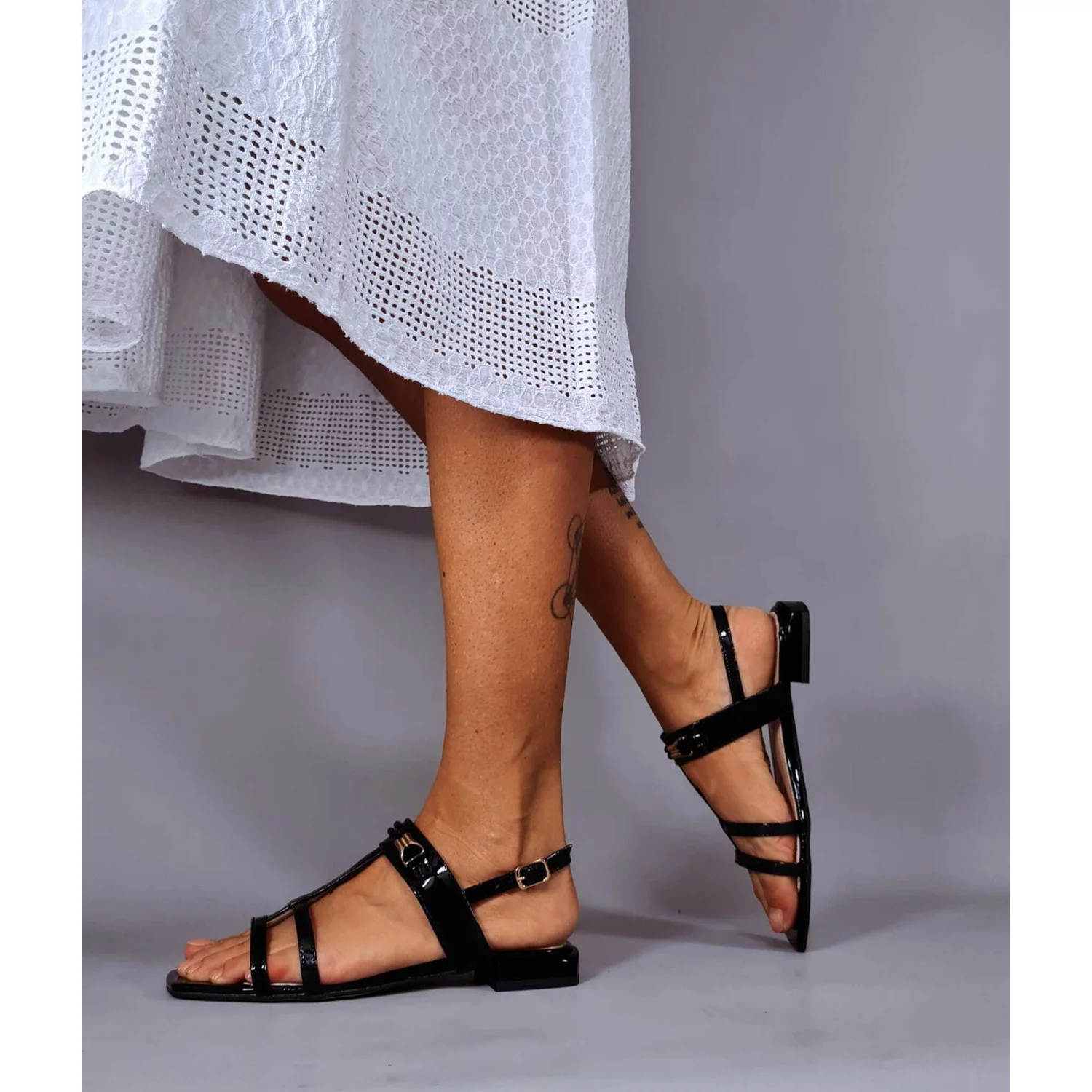 Sandale dama Piele Naturala Negre cu accesorii Glass