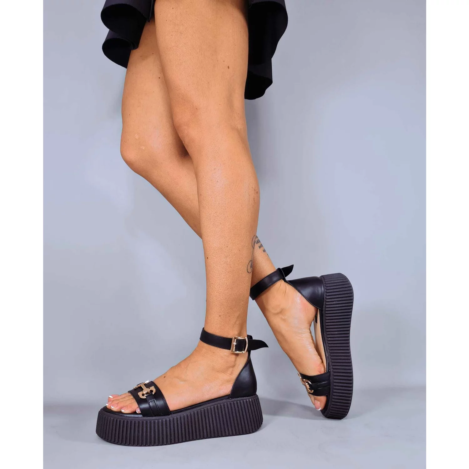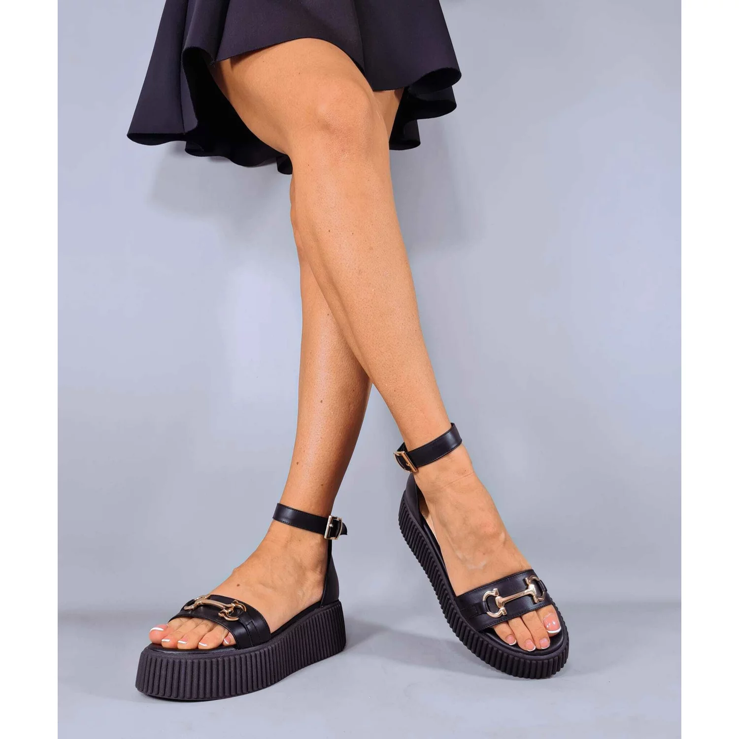 - Sandale cu talpa joasa de dama cu accesorii aurii.