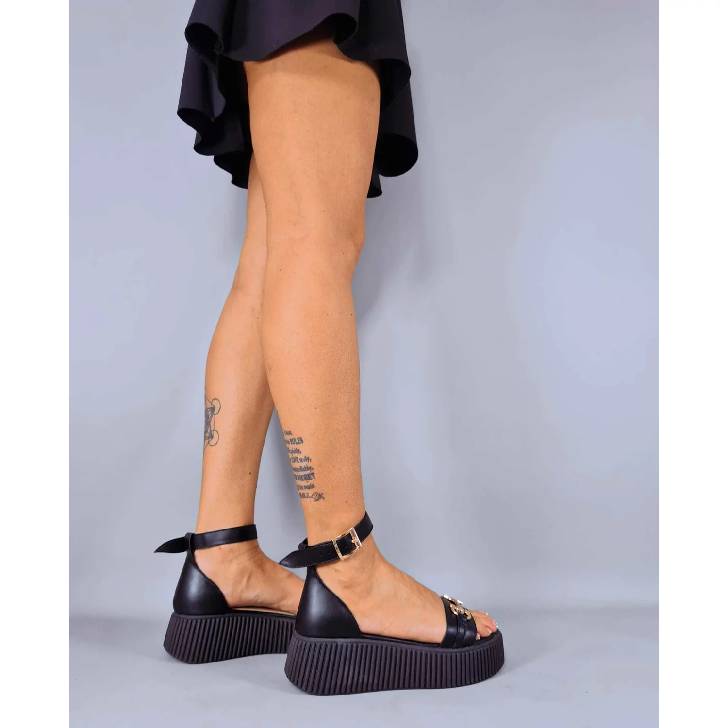 Sandale dama Piele Naturala Negre cu aceesorii Relia