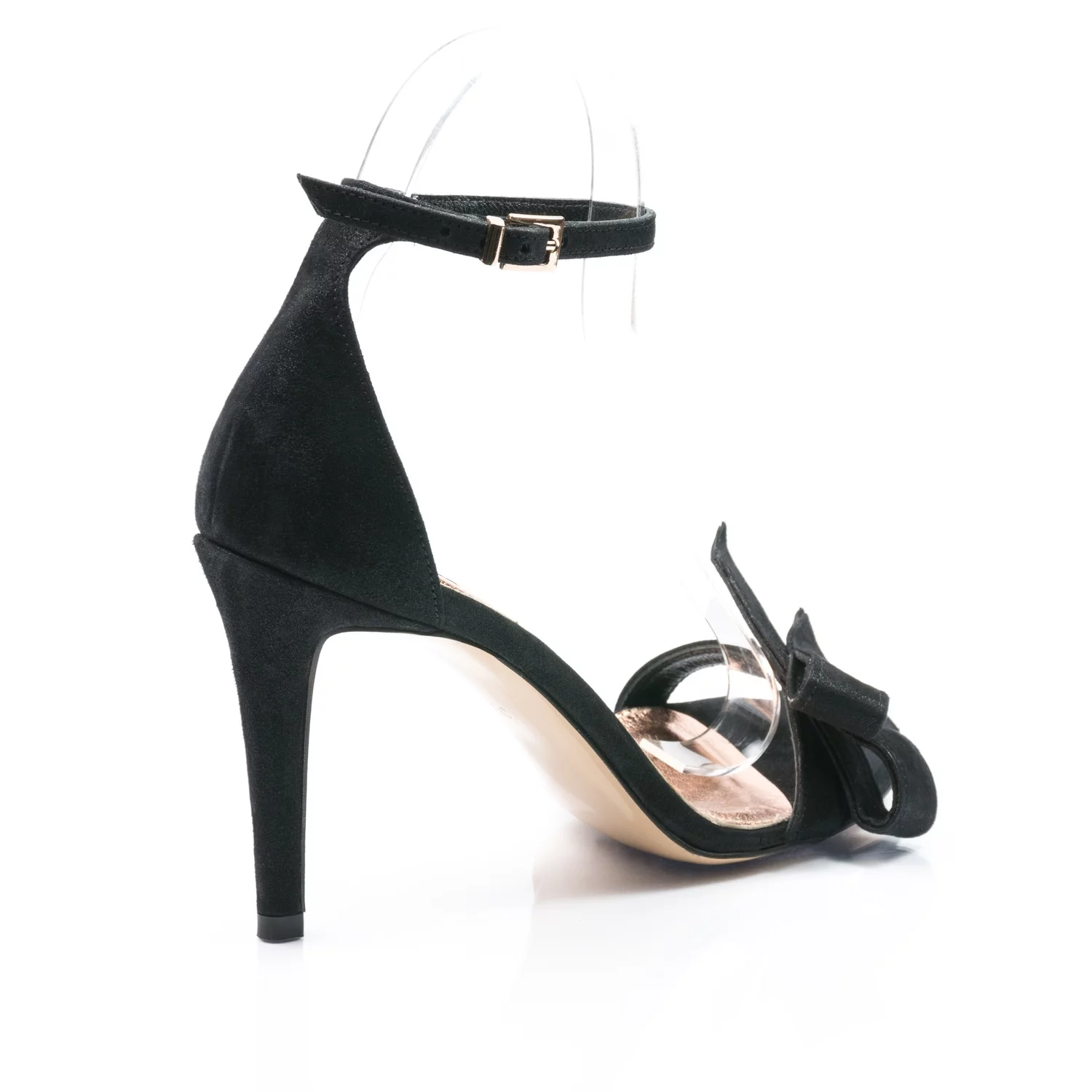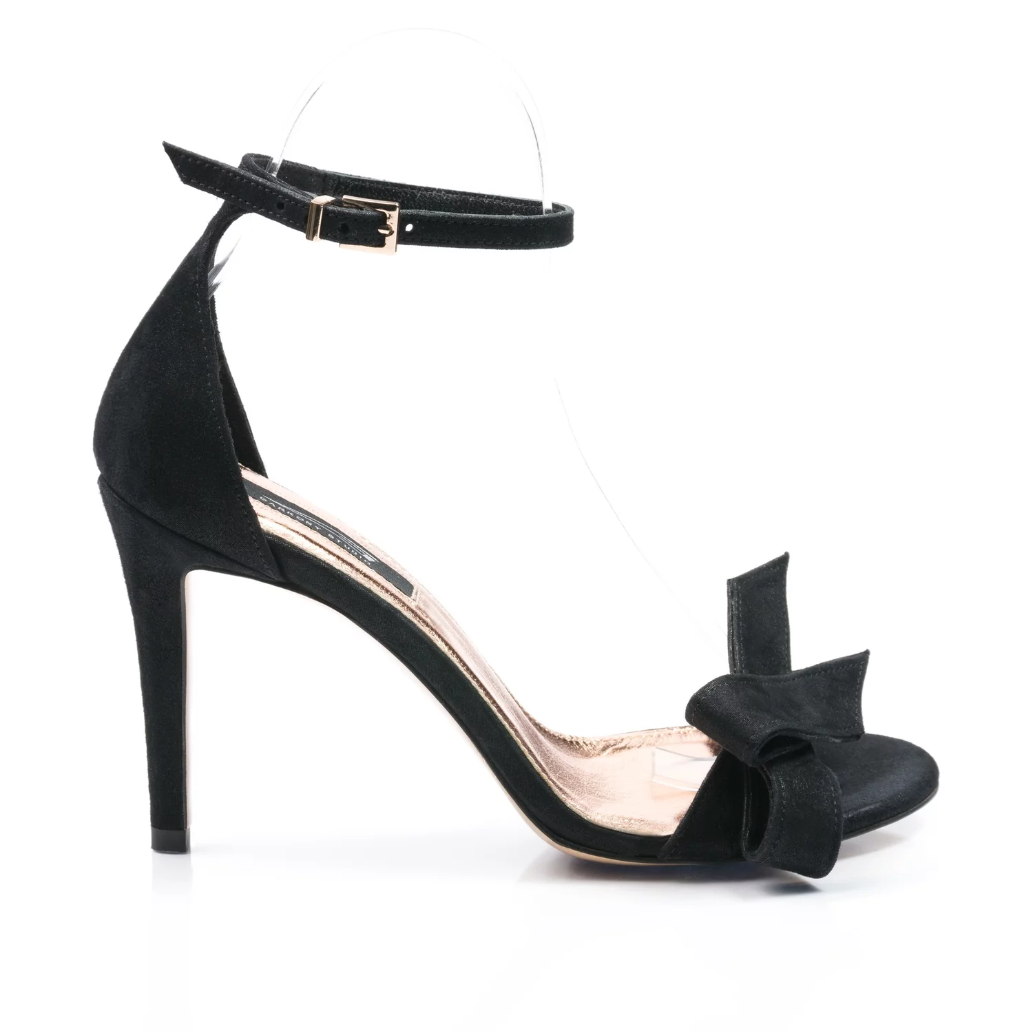 Sandale de ocazie piele intoarsa neagra Scarlet cu funda