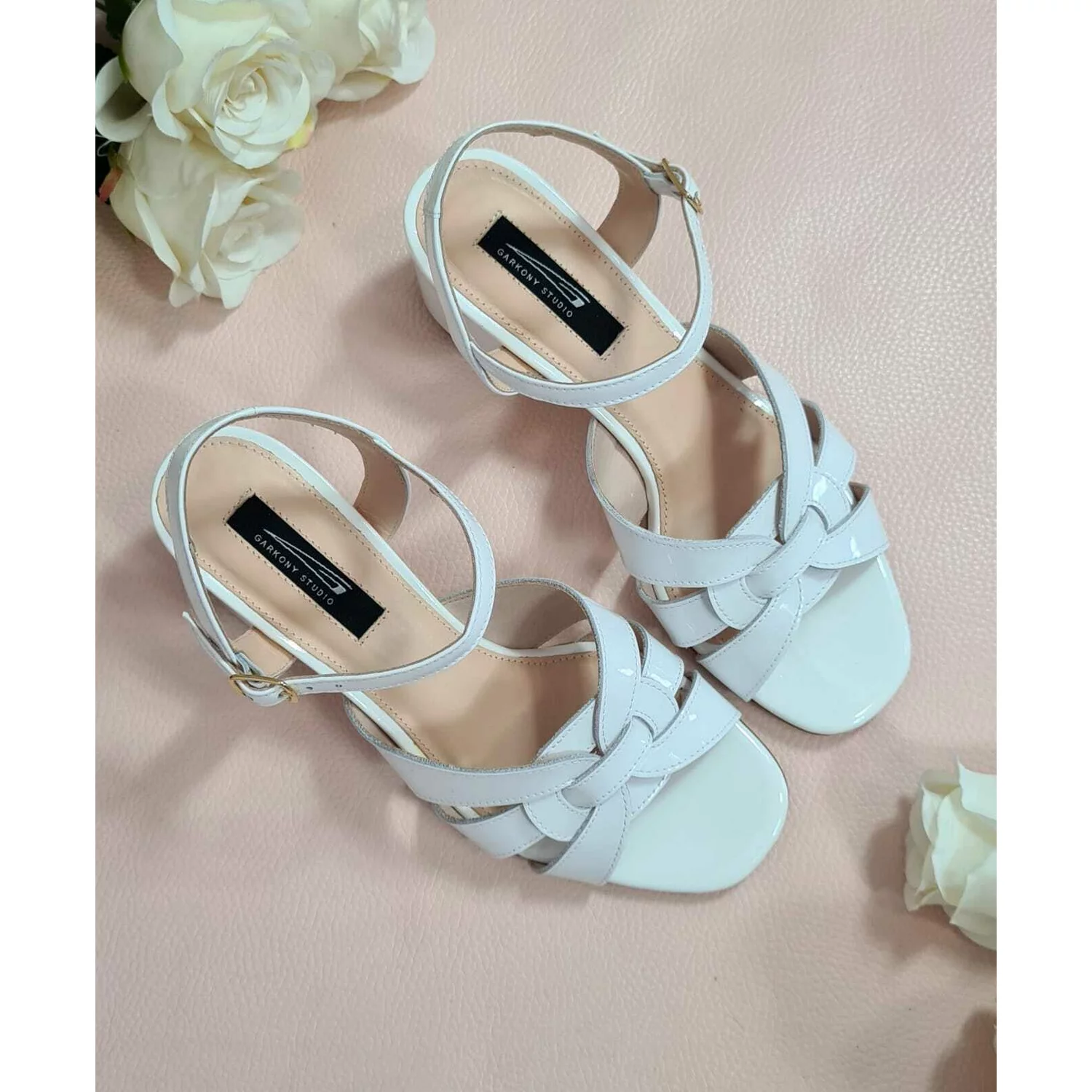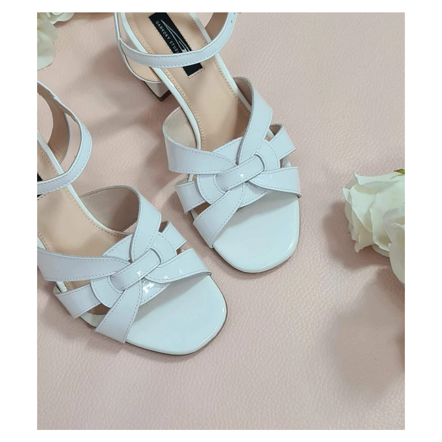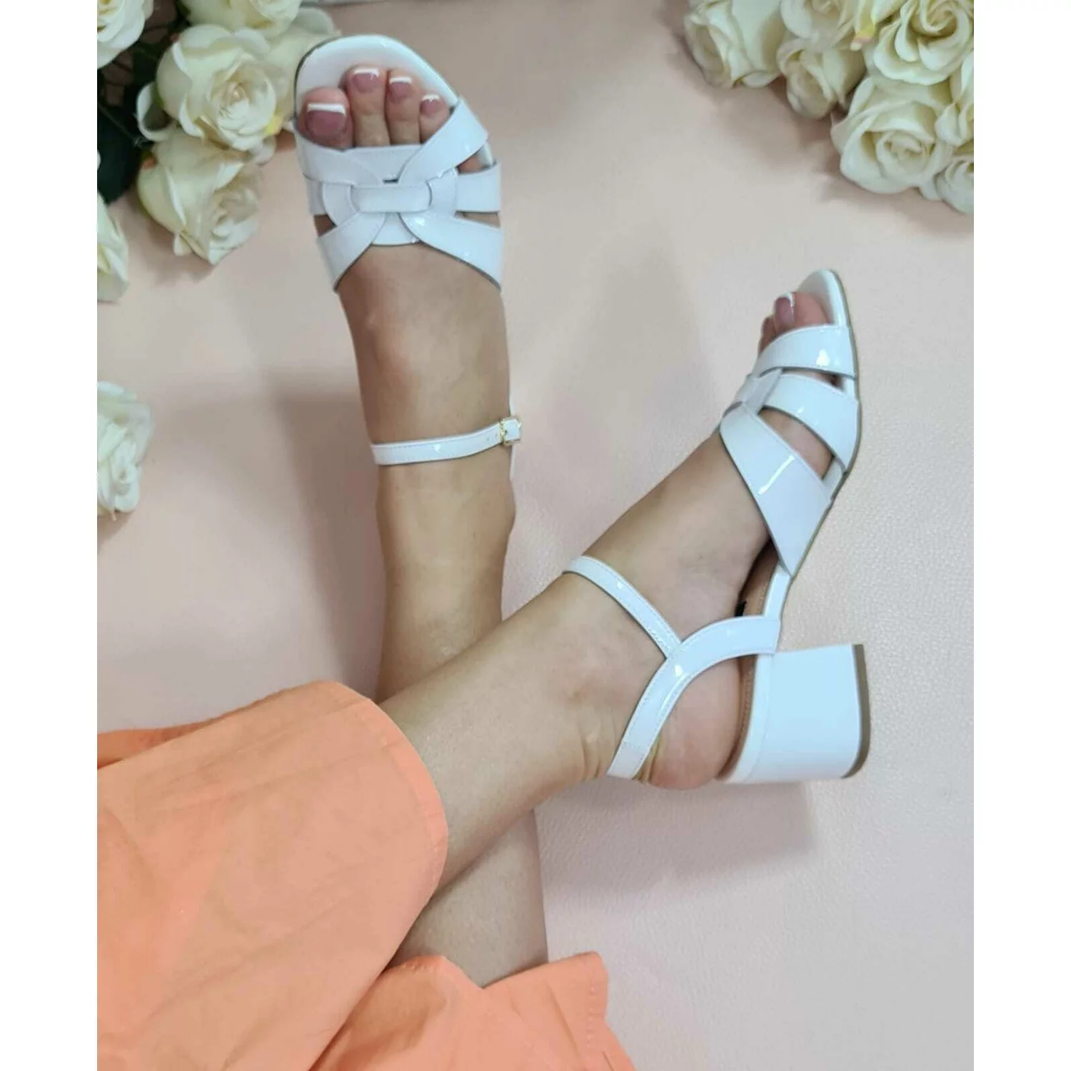 Sandale pielelacuita alba Vika