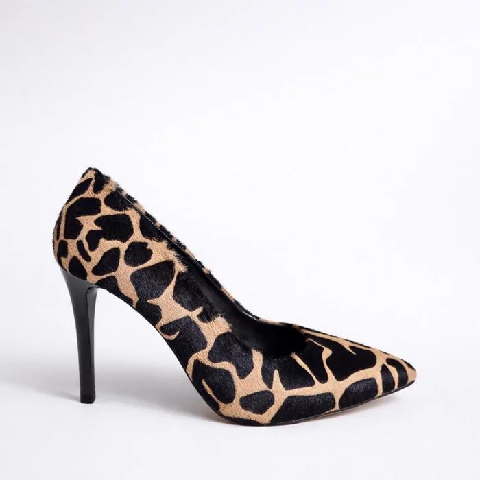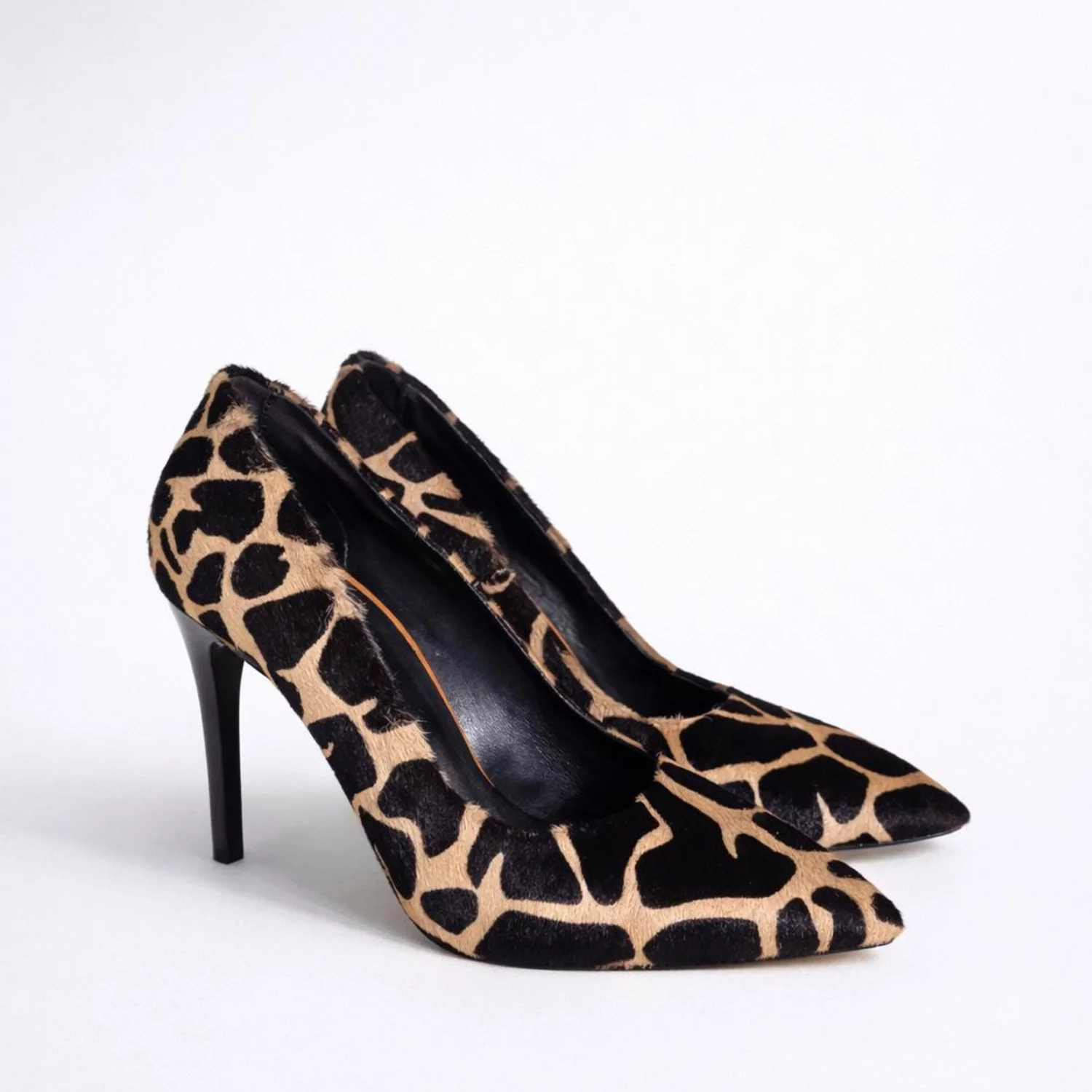 Pantofi eleganți Classy Cocoa Heels din piele naturală imprimeu ponei leopard, cu toc stiletto și design clasic. Perfecți pentru birou, evenimente sau ținute de zi elegante.